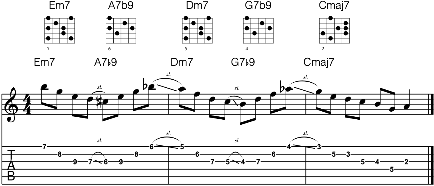 Let's take a look at an arpeggio-based riff in the key of C Major.