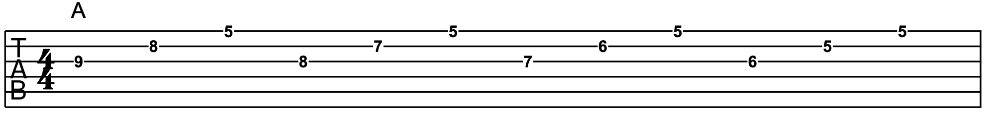 In Riff 4, we use the note A on the 5th fret of the high E string as a pedal tone, while the notes on both the G and B string descend.
