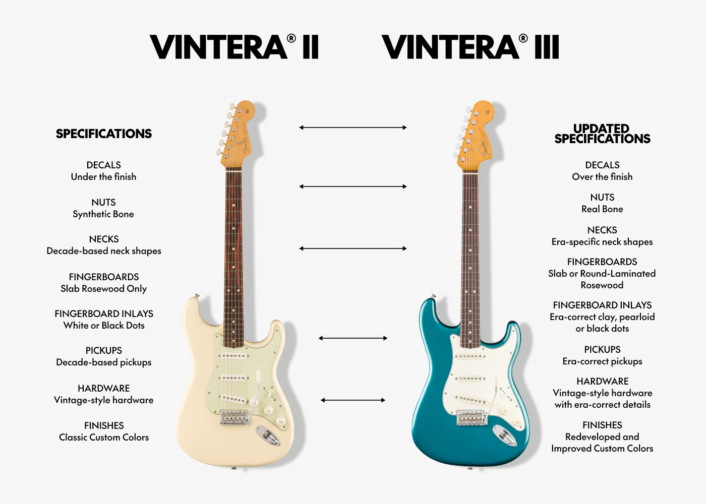 - Fender announced a new Vintera III line of electric guitars. The made-in-Mexico line features several updates from the Vintera II models, including different era-specific neck shapes, era-correct pickups, era-specific hardwear, and some great new colors.